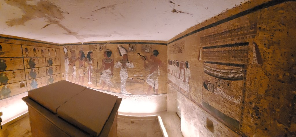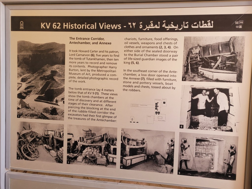 And this is the tomb of King Tut. His importance is overblown. He was a boy king who didn’t accomplish anything. His claim to fame is the fact that his tomb was discovered intact while most, if not all, of other pharaoh’s tombs had been broken into and looted.