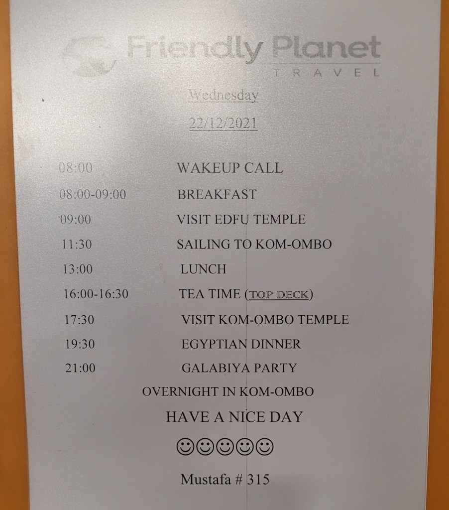 We’re heading up river to Aswan but won’t be there until Thurday.