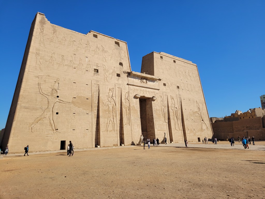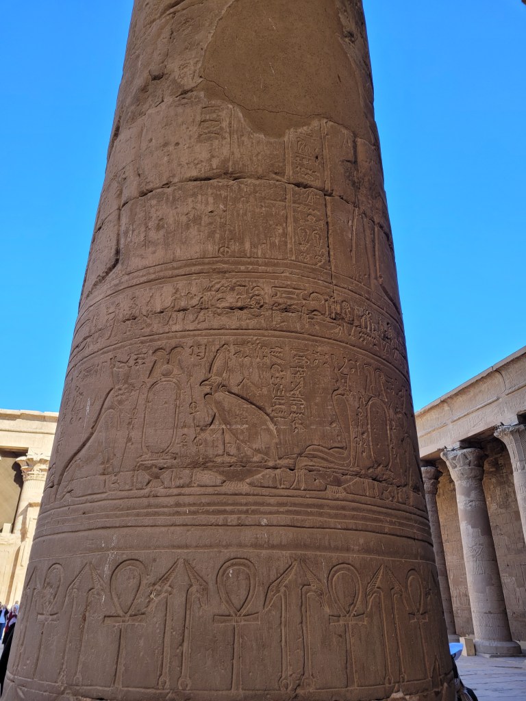 Today, saw the Temple of Horus at Edfu, Egypt. They’re in great condition because they were buried in sand for a long time. They were built starting in 237 BC and finished 180 years later.