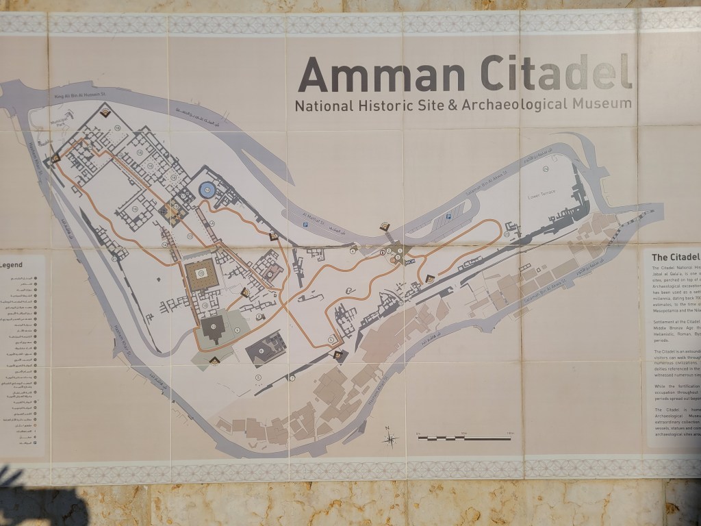 The hand pointing at where we are on a map of Jordan belongs to our guide. He has given more information than I could absorb.
