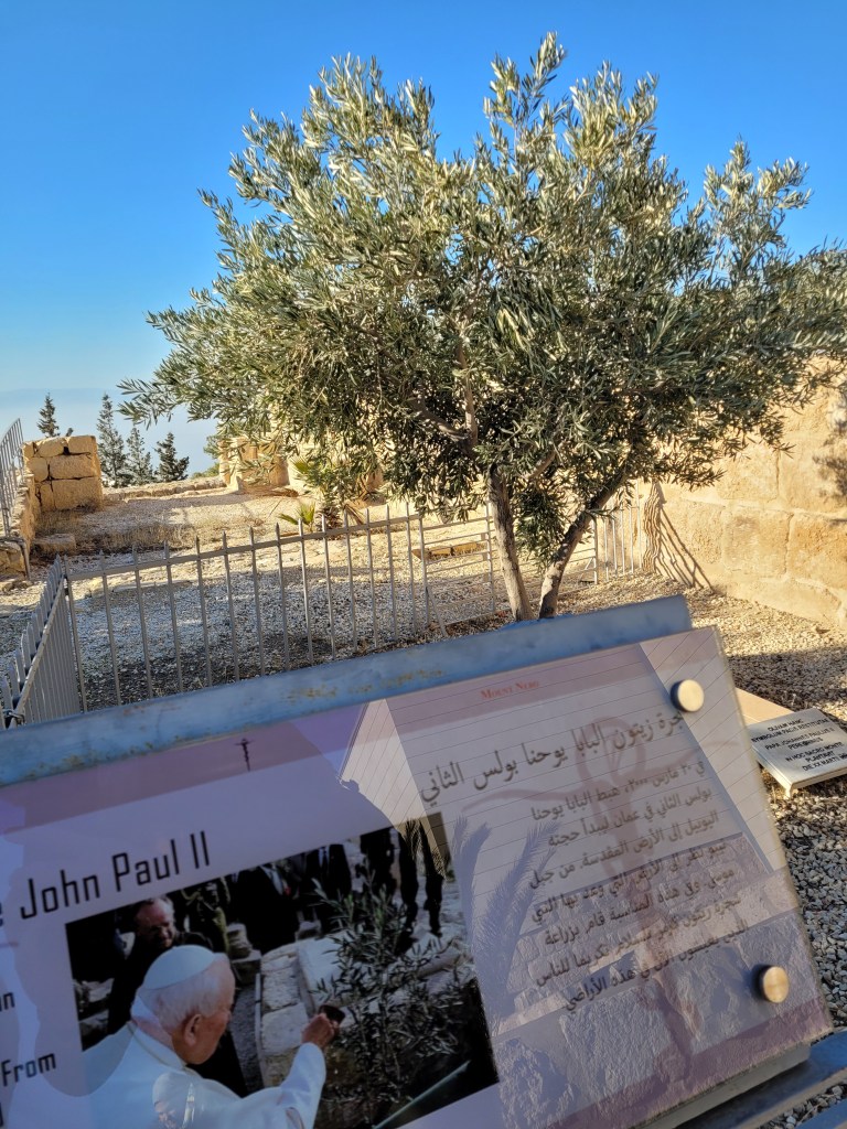There’s a very old Greek Orthodox church on top of Mt Nebo. Pope John Paul II planted an olive tree next to it in 2000.