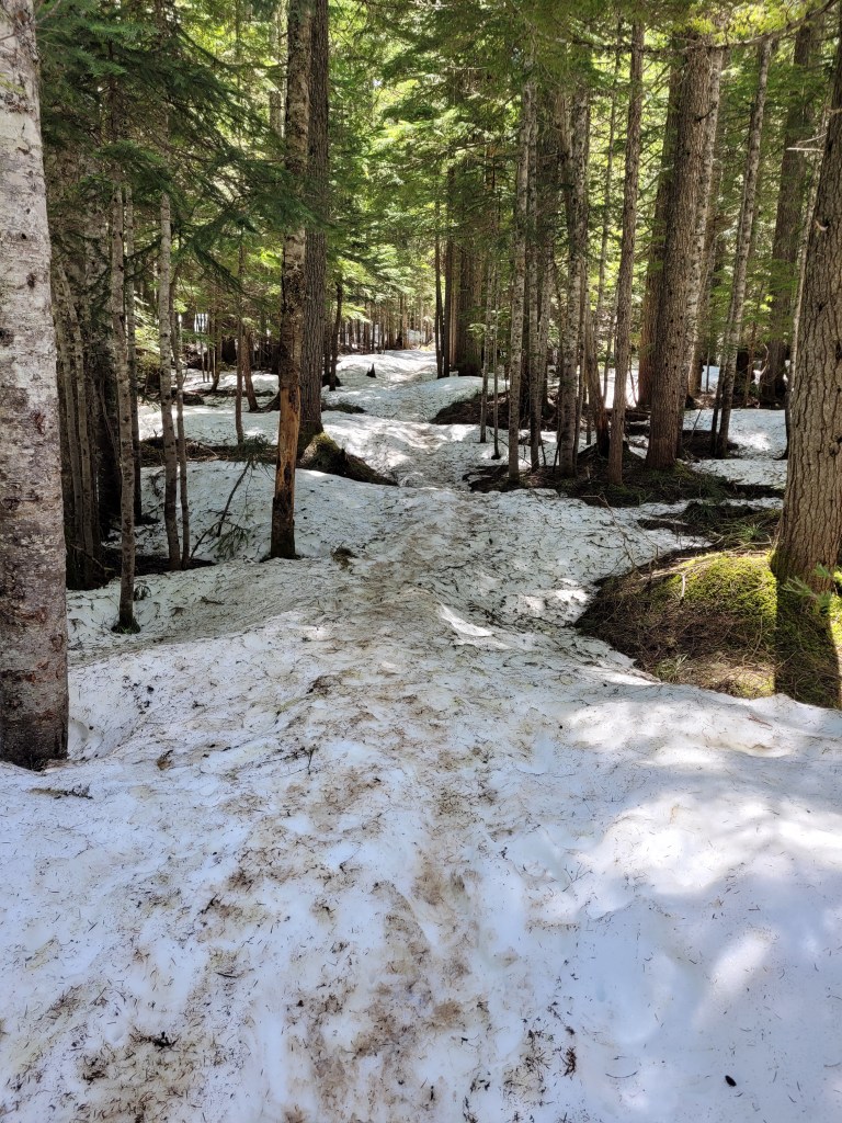 Some of the hike was through long patches of snow. It was slow going at times and a couple of times I sank through over my calf and the snow wanted to keep my shoe. And, part of the worst was uphill which meant some sliding.