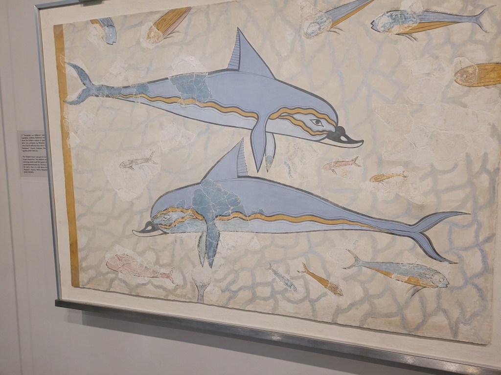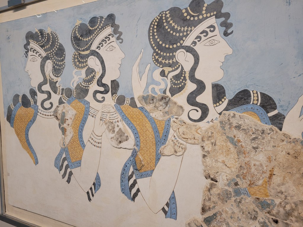 Visited the Heraklion Archeological Museum which features stuff from the Minoan civilization. The Minoans are considered to be Europe’s first advanced civilization. They got things started around 3000 BC. Did you get that? 3000 BC, over 5000 years ago.
