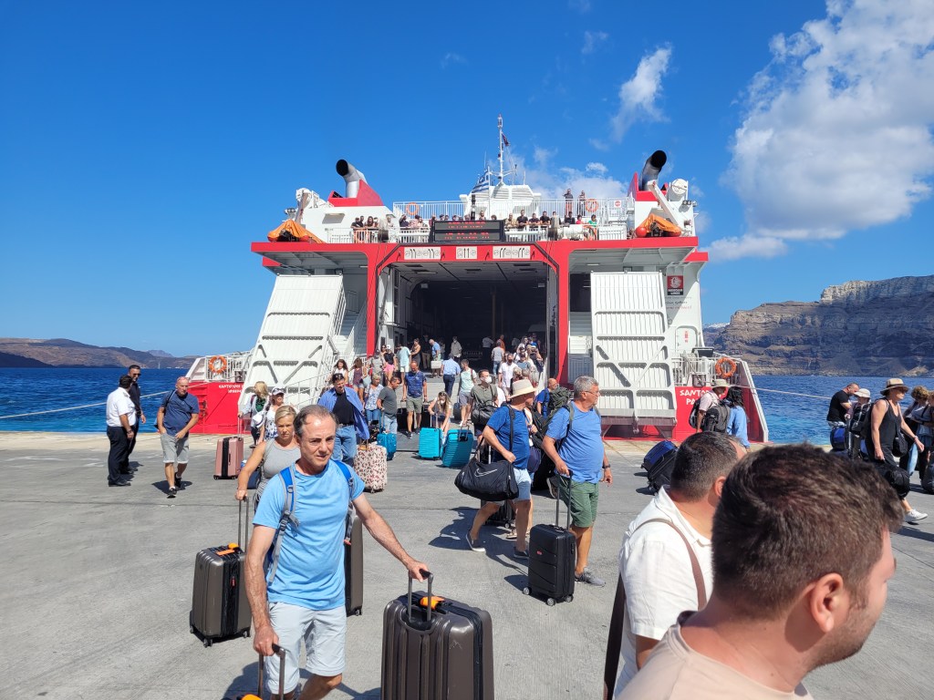 Took a ferry from Heraklion, Crete to the island of Santorini about 30 miles north. It took two hours and I had a great front window seat.