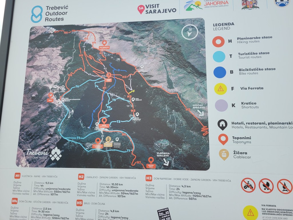 Took the cable car up Trebevic Peak south of Central Sarajevo. The views were good up there. The mountain was the site of the bobsled course in the 1984 Winter Olympics which was held in Sarajevo. The mountain was also used by the Croats and Serbs for shelling the city during the ugly war of the early 90’s.
