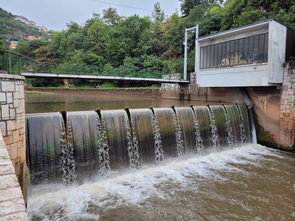 The falls is on the Miljacka River which in Sarajevo looks like a big drainage ditch.