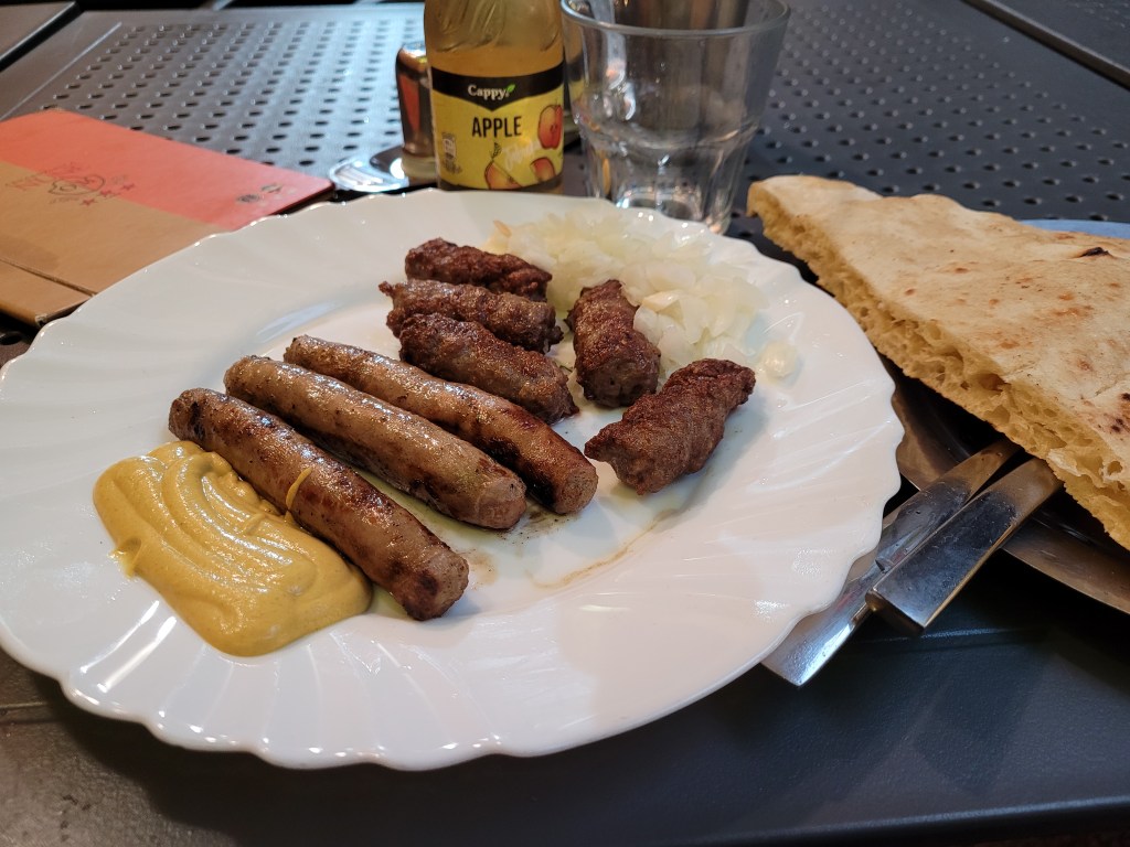 Had the cevapi that my AirBnB host recommended. It was ground beef sausages. The other links on the plate are sausages that tasted like what we can get at the grocery in the US.