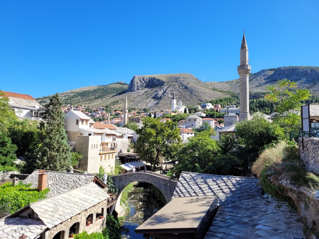 The Croatian coast is beautiful. Photos show some of the sights along the way but most are of Mostar in Bosnia and Herzegovina. The high arched bridge is a famous landmark of Mostar. And yes, the guy is going to jump and he lived. Guys do it all the time for money.