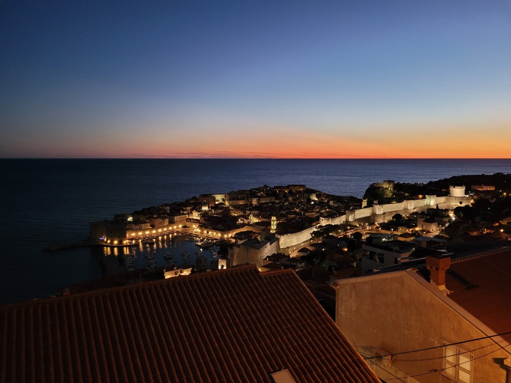 The view from my AirBnB just after sunset is amazing. The Adriatic Sea is a stunning blue and the old walled part of Dubrovnik is quite a sight.