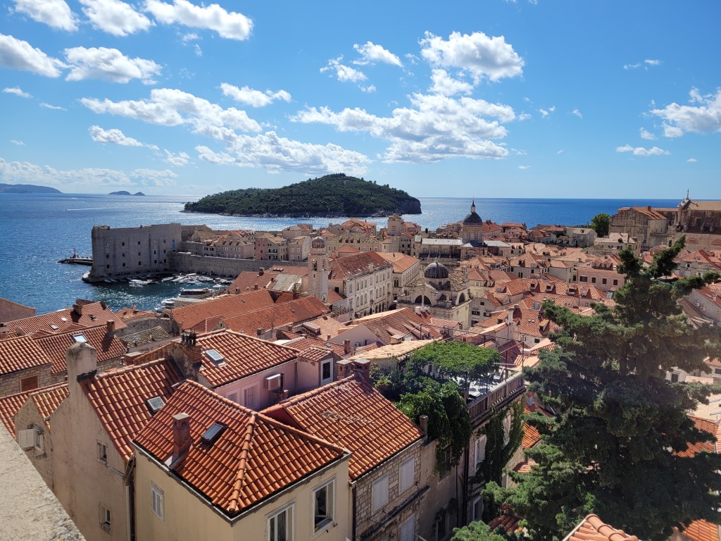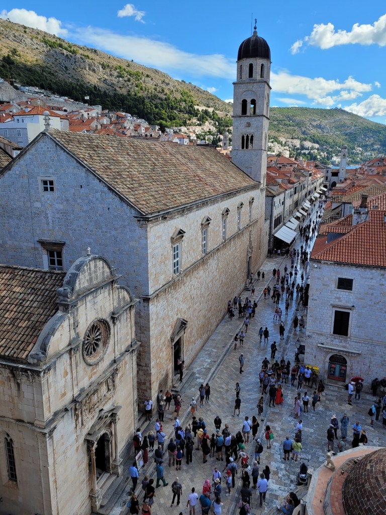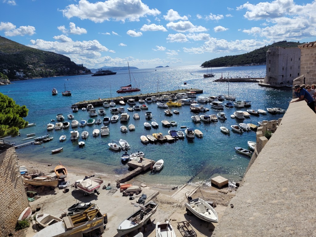 This morning I walked the walls of old town Dubrovnik. Lots of people do this. You buy a ticket for about $15 and then you get to walk completely around the old city on the path at the top of the wall. There are lots of steps but the views are good. The walk is a little over a mile.