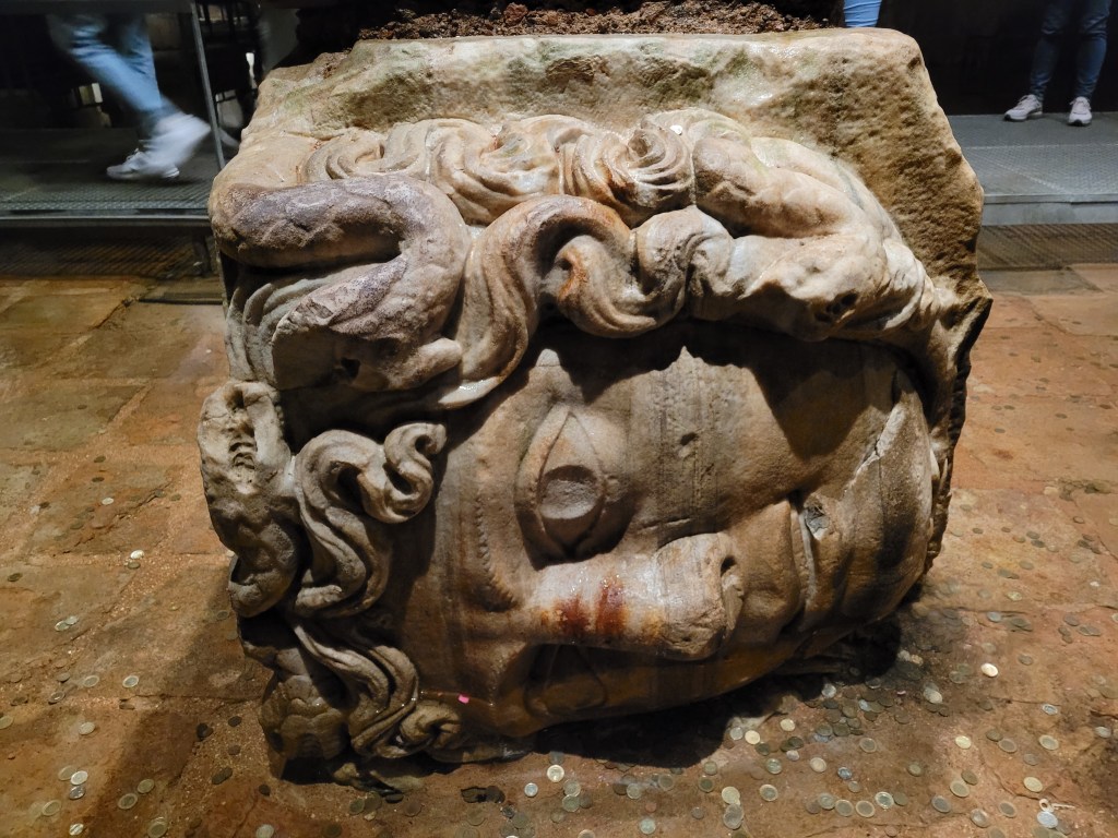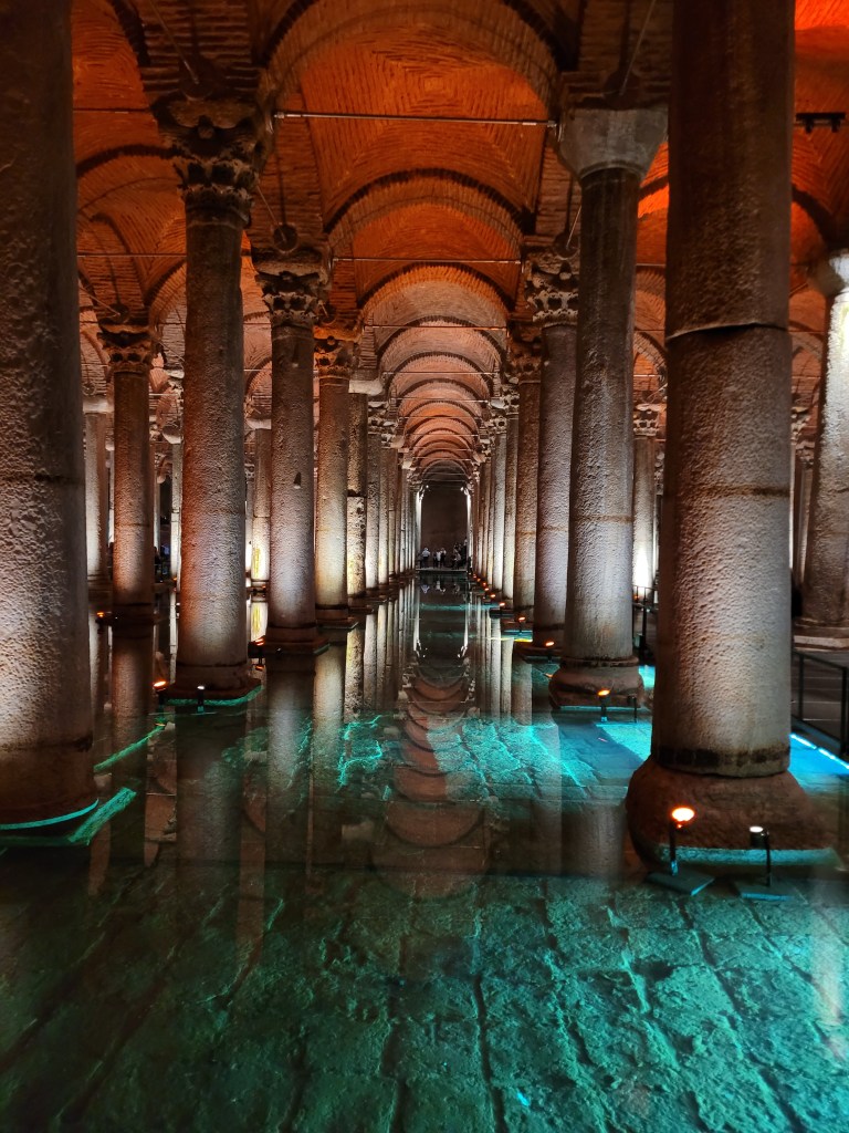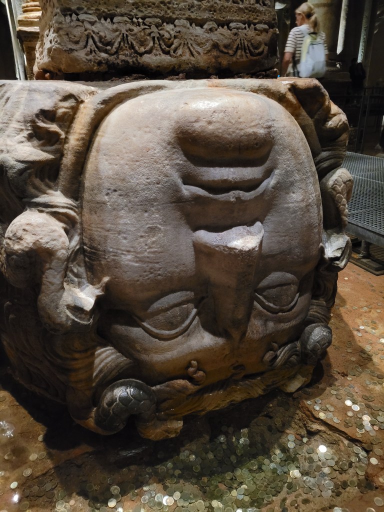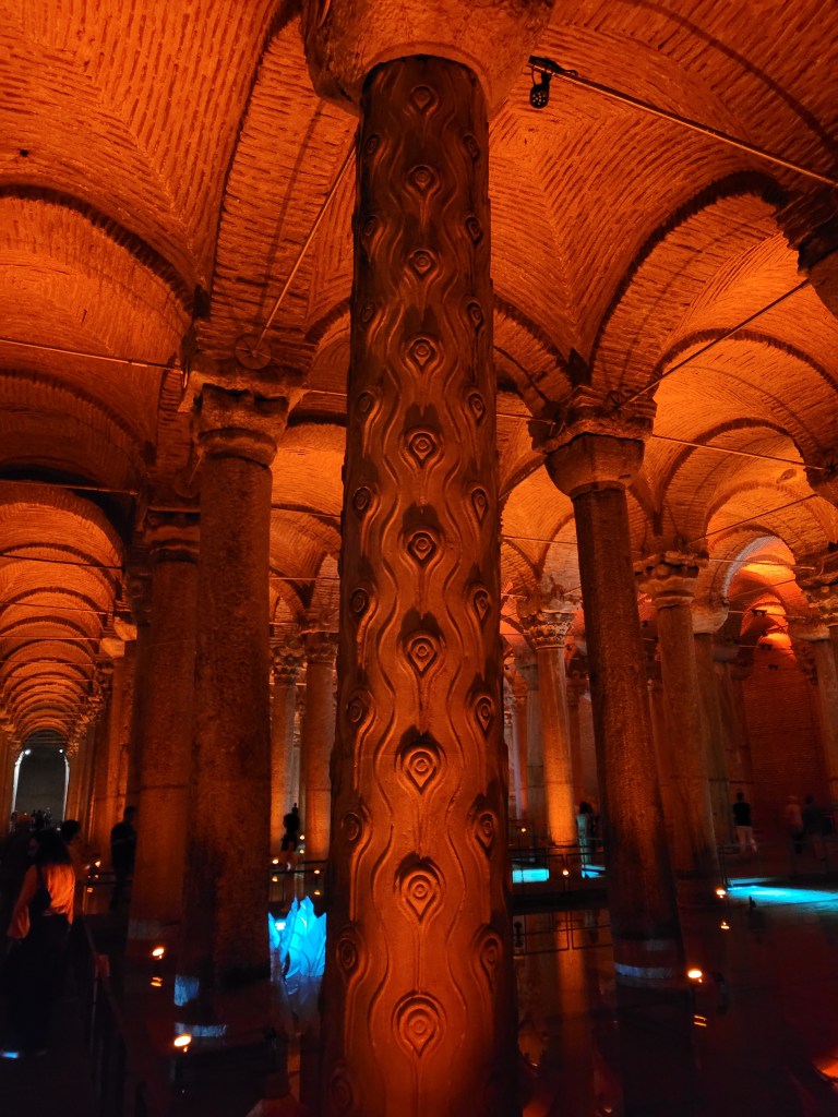 Walked to Basilica Cistern, an underground water storage facility as ornate as a cathedral. Istanbul has plenty of salt water all around but fresh water has been a problem since ancient times. So, this was built for water storage in Roman times.