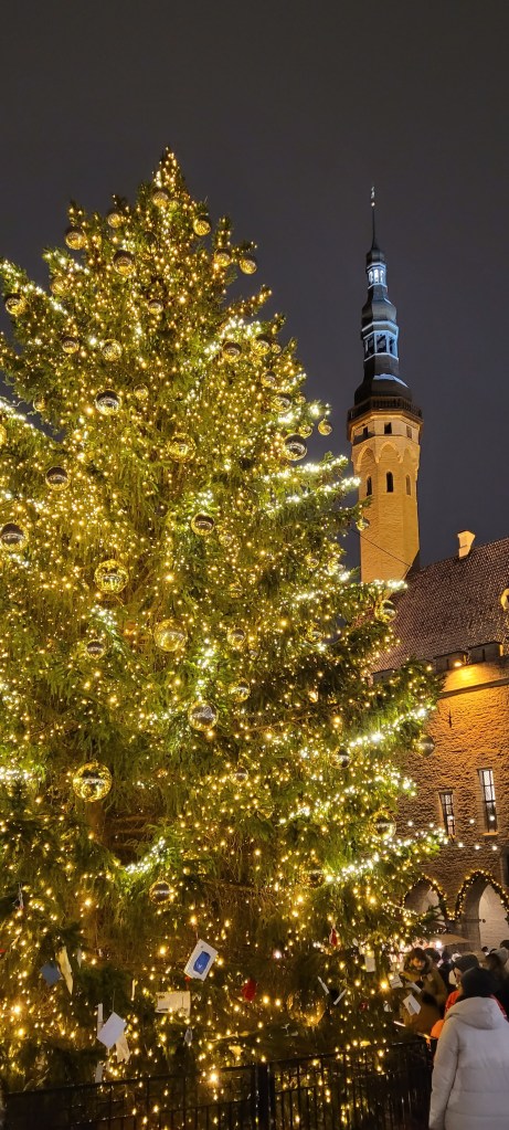 The guide said the first Christmas tree put up in a public square was in Riga, Latvia. Latvia neighbors Estonia to the west. But, Evar emphasized that the first Christmas tree to be decorated was here in Tallinn. They used little candle lanterns.