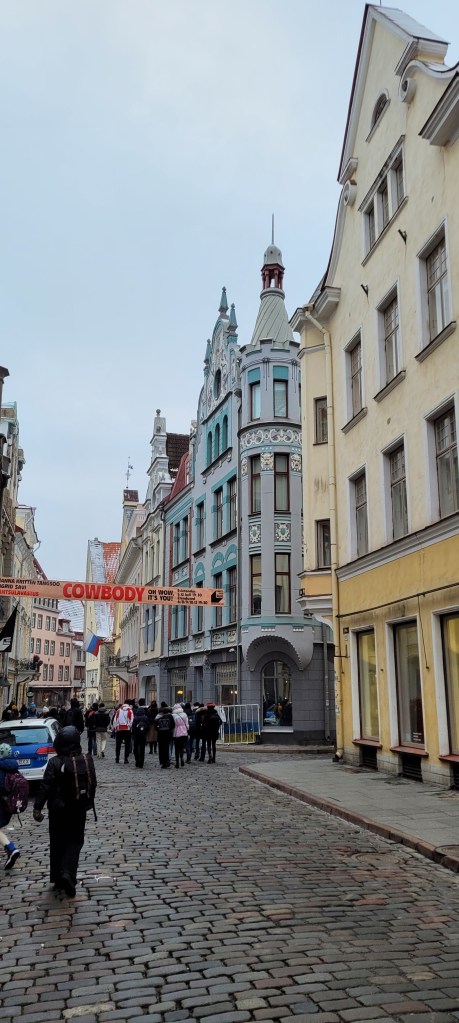 Went on an hour and a half walking tour of Tallinn early this afternoon. It was led by a good storyteller dressed in medieval attire. I think the guide’s name is Evar.