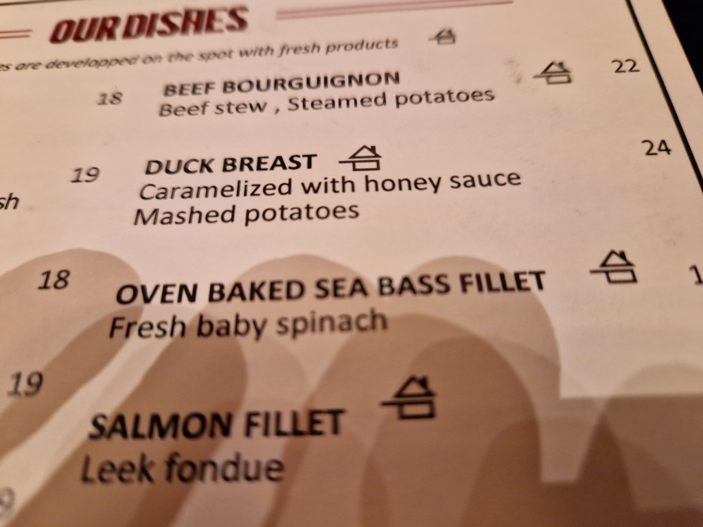 Found a place and had duck breast, a glass of red wine and crepes with chocolate sauce and bananas. Good meal to cap a crappy day.