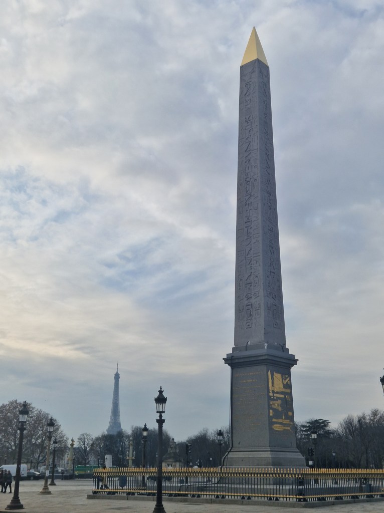 After coming down the Arc de Triomphe, walked the entire length of the Champs-Elysees, 1.2 miles. It ends at Place de la Concord with its Egyptian obelisk.