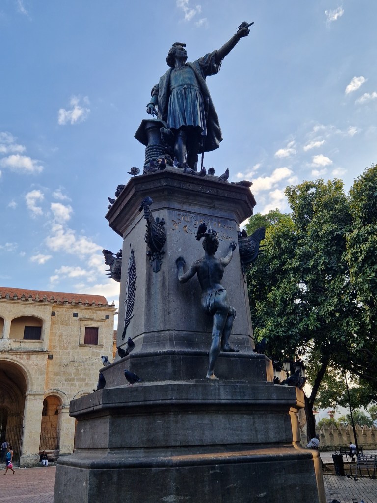 The statue is of Christopher Columbus showing pigeons the way. Behind the statue is the oldest standing cathedral in the Western Hemisphere started in 1521. I plan to go in it tomorrow.