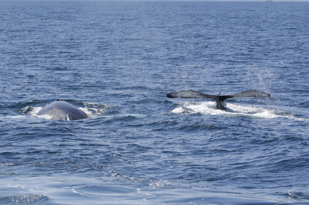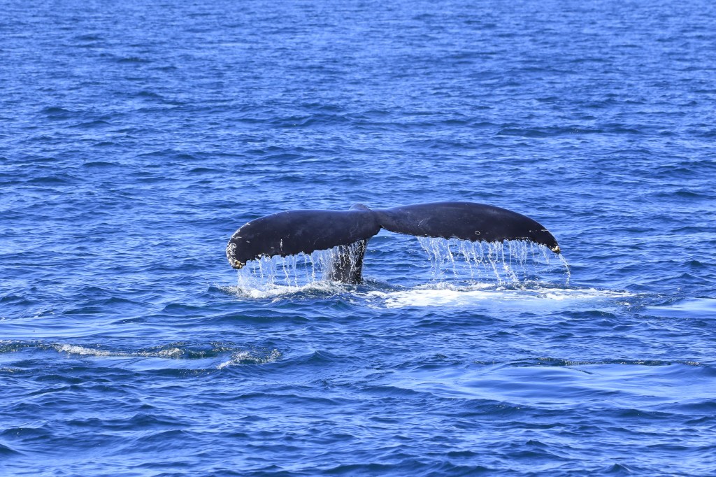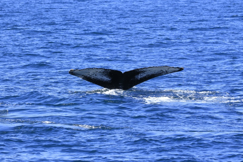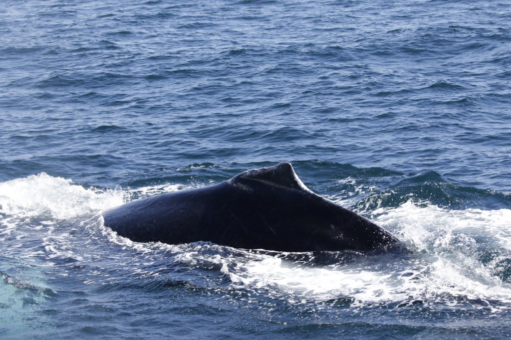 Male humpbacks will fight for a female and some males may get a chunk of their tail chomped off. The good photos of the whales were taken by a photographer for the tour company. The photos are better than I got using the camera in my phone.