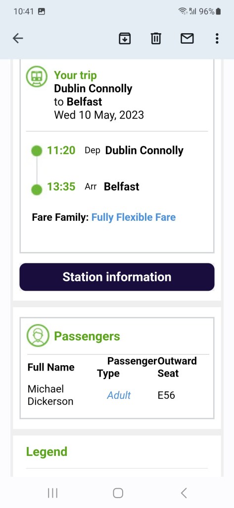 Took the train to Belfast late this morning. It took just over two hours from Dublin. The train isn’t fast. The isle of Ireland just isn’t large. Wish I could say the train ride was a pleasure but there wasn’t enough legroom. Sat at a table with three other people and it was hard to keep my feet from hitting theirs. Train travel is usually much better than driving. You can relax and look at the scenery.