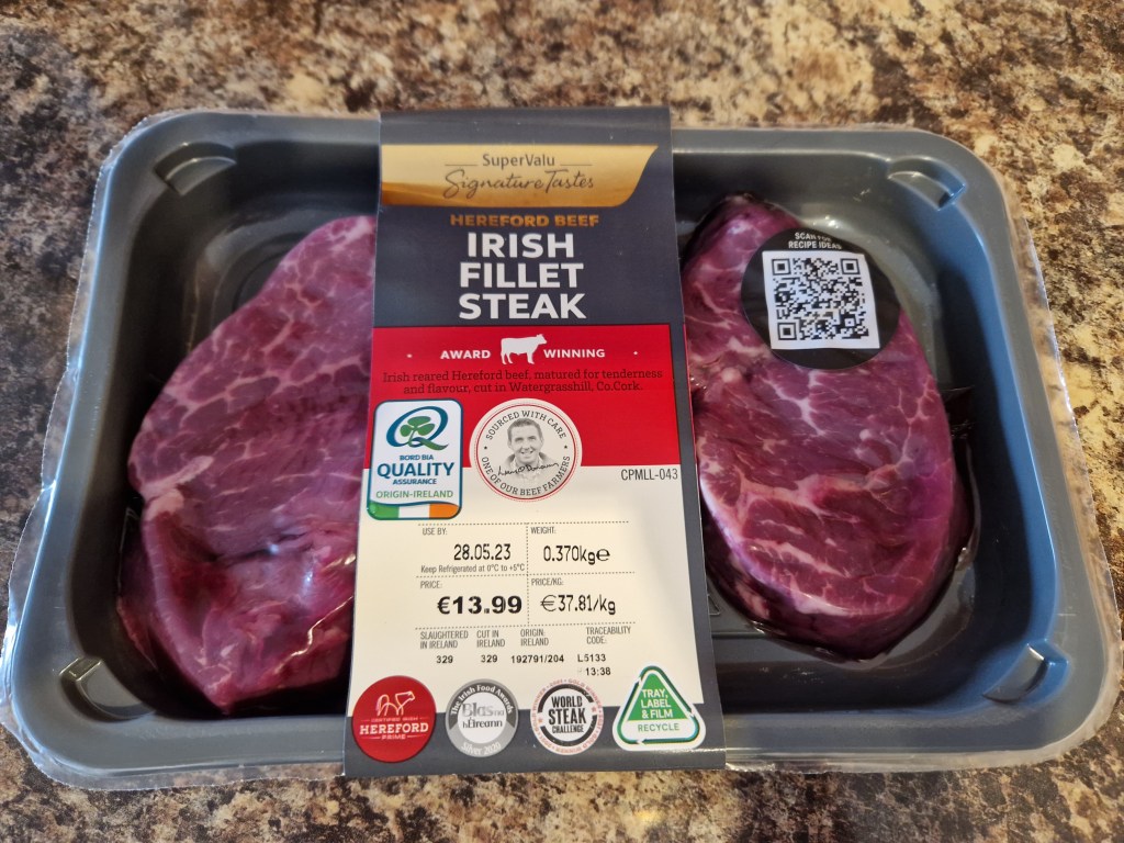 I didn’t buy the pudding. I bought Irish steaks. It’s great to cook my own dinner because I’ve had pub grub for the last several nights. It was fish & chips overload.