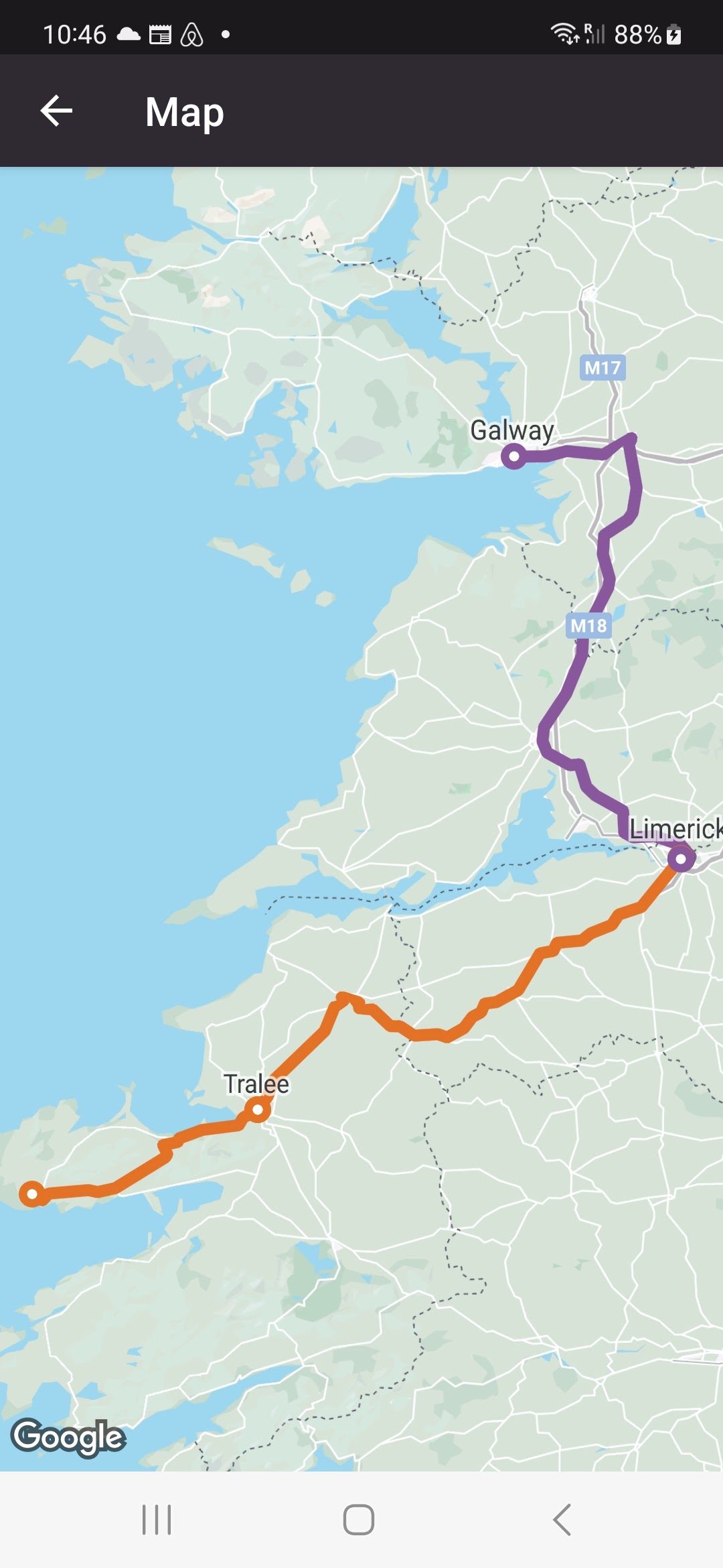 Took a train and two buses from Galway to Dingle, about eight and a half hours for the trip. Think it only cost about $40.
