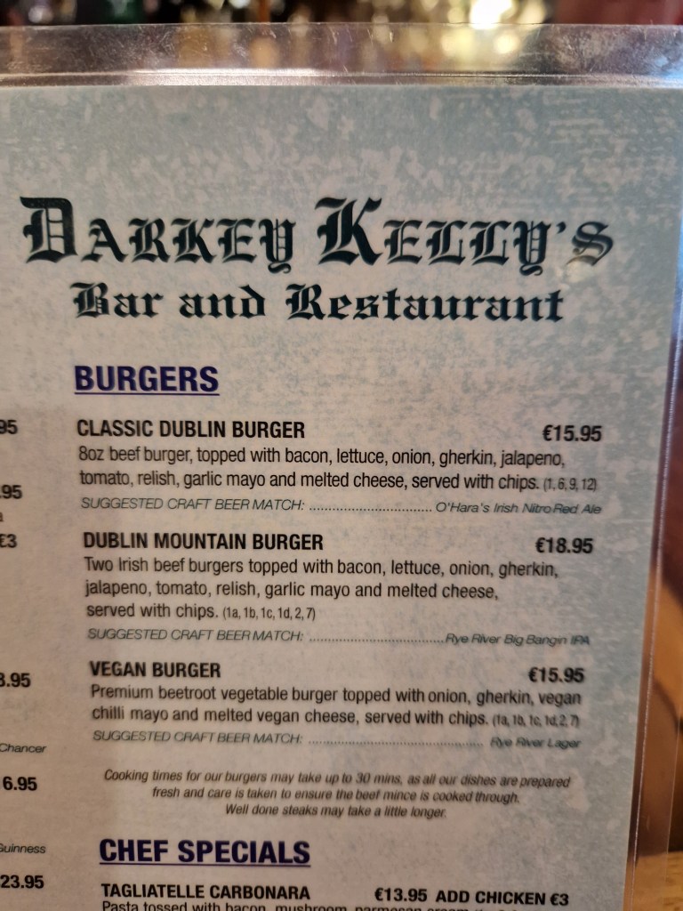 The two churches are near my place in Dublin. And, that’s bangers and mash for dinner at Darkey Kelley’s Pub.