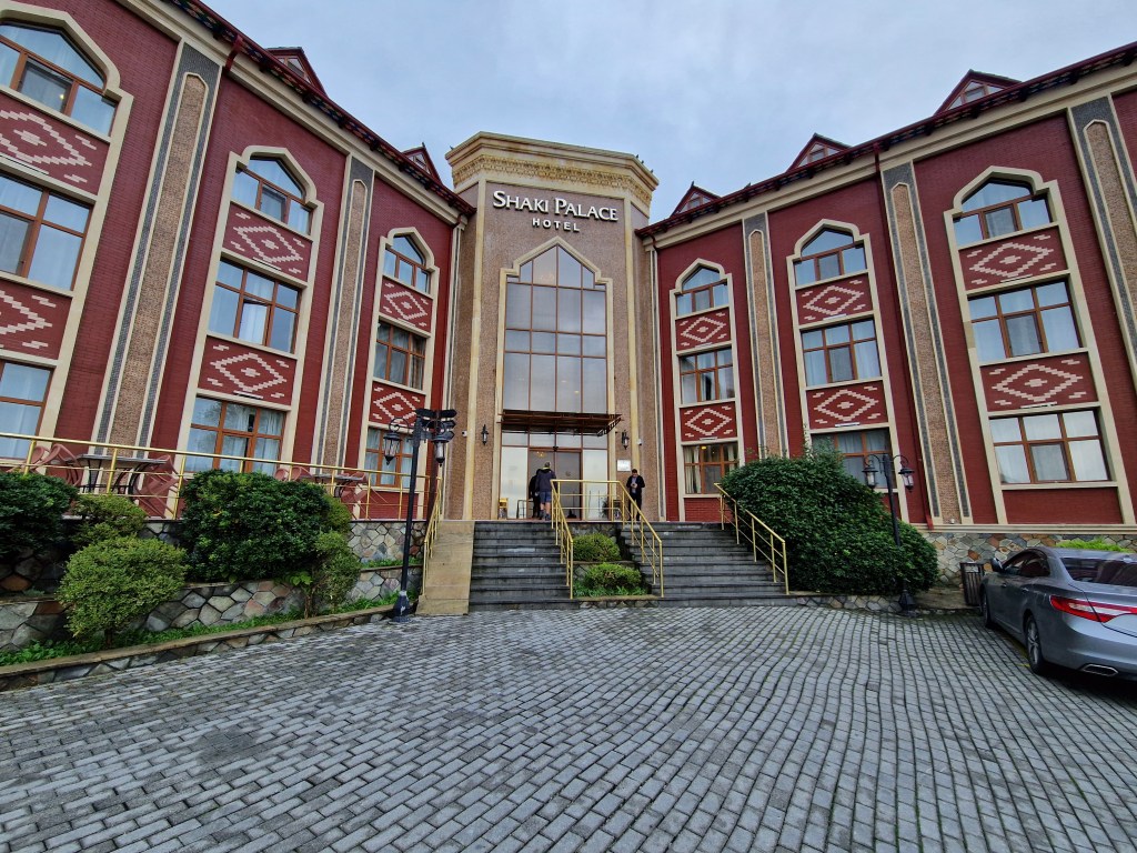 Sheki is in the foothills of the Caucasus Mountains and the mountains look like the Appalachians with rounded peaks cloaked in deciduous trees. Clouds blanketed some mountain tops.