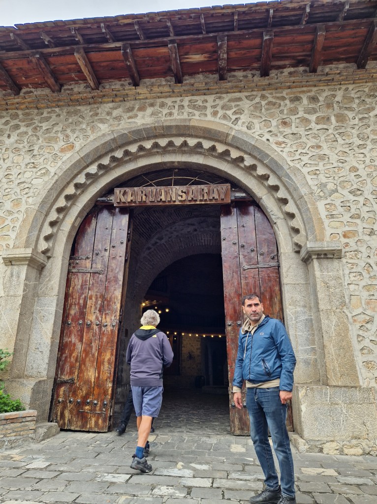 Sheki back to Baku. The drive took a different route than to Sheki. Saw big oil drilling platforms in the Caspian Sea, the main source of Azerbaijan’s wealth, and before leaving Sheki, some of the old Silk Road caravan accommodation and Khan palace.