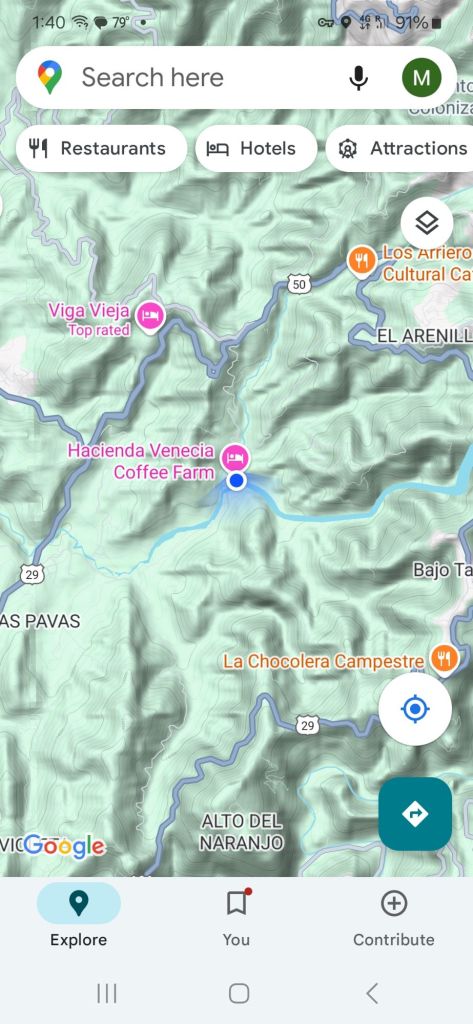Staying at a coffee farm, Hacienda Venecia. Learned a lot about coffee and its production and harvesting. We picked some beans which were graded by our guide. Then, sampled coffee from beans roasted to light, medium and dark.