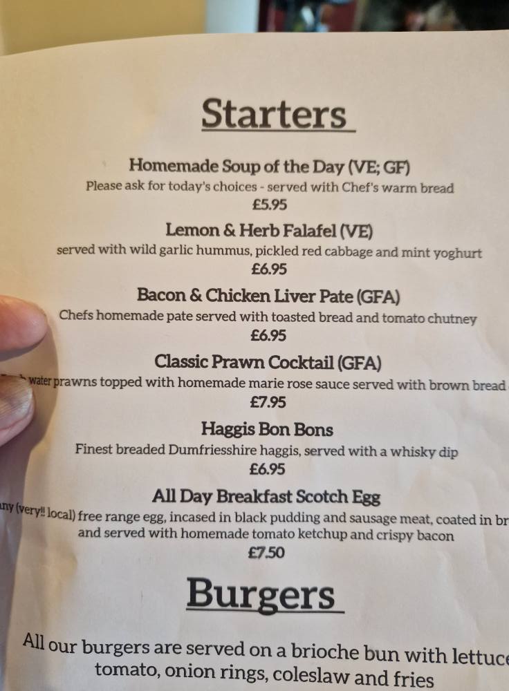 Dinner at Samson Inn, where I’m staying, was pretty good. Had haggis bon bons for a starter just to see what that would be like. Not bad at all. Then, salmon & prawn pasta which was good but could have eaten two bowls of it.