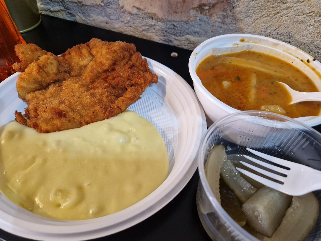 Hungarian food is good, especially if you like paprika. These photos are from lunch and dinner.