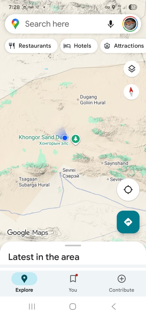 Lot of driving yesterday, deeper into the Gobi Desert in southern Mongolia. There’s a strip of sand dunes up to 900 feet tall stretching 180 km with a width of about 5 km.