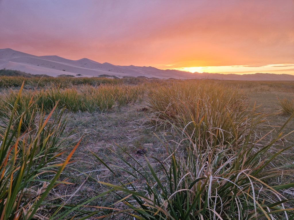 Sunset in the Gobi Desert, southern Mongolia.