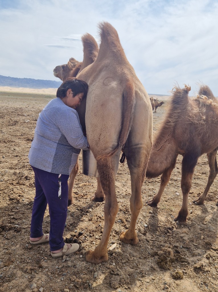 Visited a Mongolian nomadic family near our ger (yurt) camp. Learned about their ways and drank some fermented camel milk. Tangy.