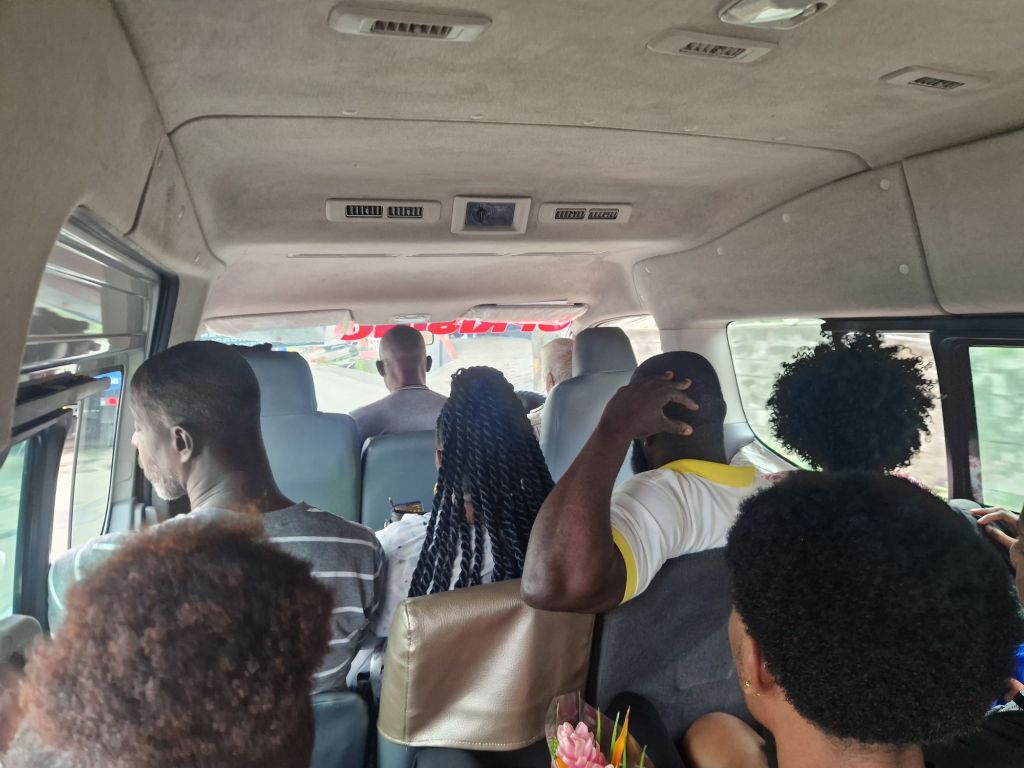 So, the “bus” held 19 people which includes the driver and the tout/money man. Babies in laps can add to the count. The vans usually don’t leave the station until they are full.