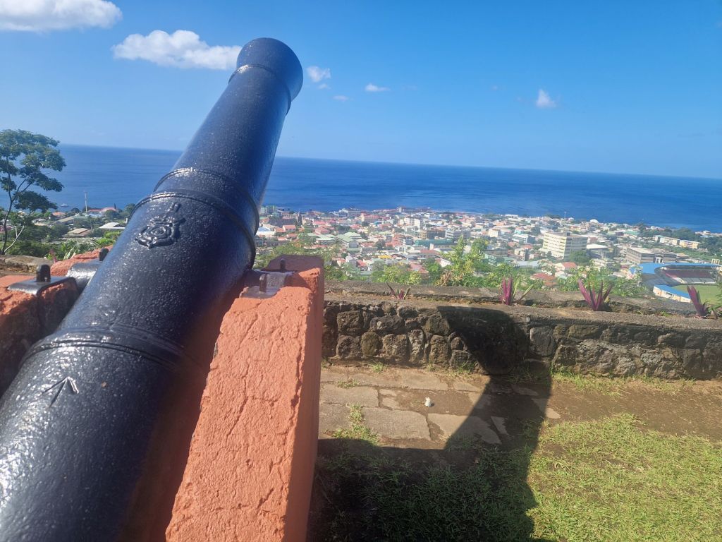 In Roseau, Dominica’s largest city and the capital, a garrison was built at the top of the hill Morne Bruce by the French and then when Britain took the island, they took over the garrison and placed their own cannons on top of the hill to protect the bay.